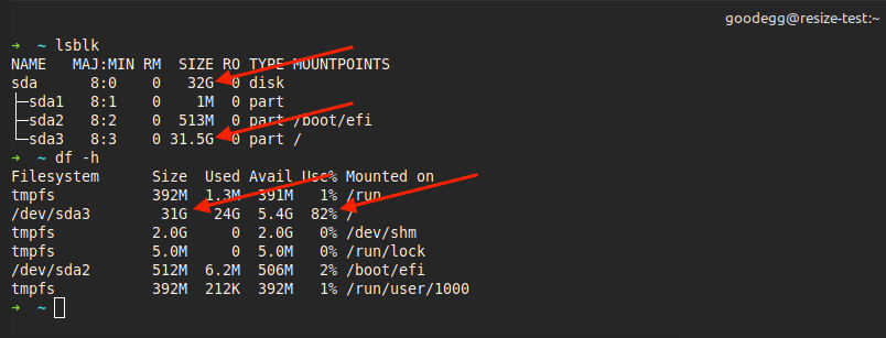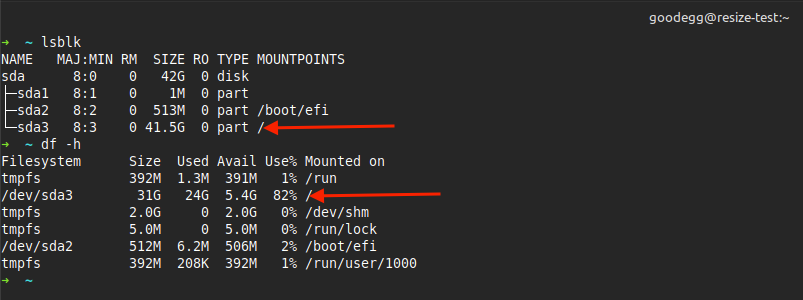 We can see from lsblk output that although the physical disk is fully allocated, the linux logical filesystem is still not reclaimed.