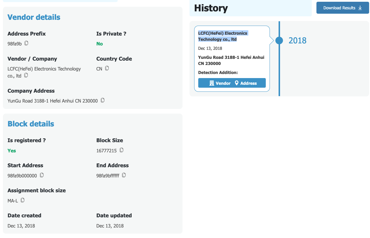 In this example, the lookup tool identified the vendor as “LCFC (Hefei) Electronics Technology Co., Ltd.” I had no idea what this was, but a quick Google search revealed that it’s “Lenovo’s largest global R&D and manufacturing base for personal computers.” This simple step gave me much more confidence in identifying the device.